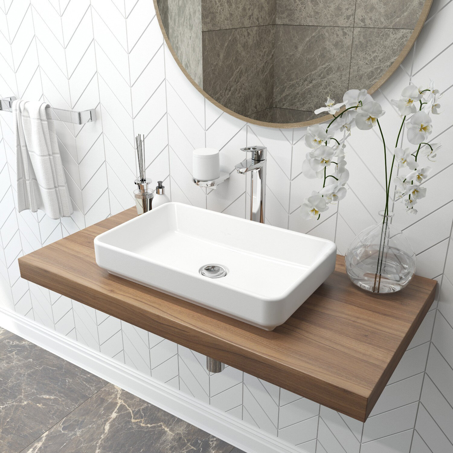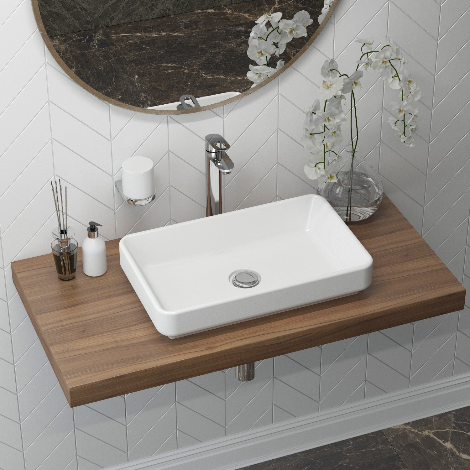 Накладная раковина в ванную Lavinia Boho Bathroom Sink Slim 33311004: умывальник из фарфора 55 см, прямоугольный, цвет глянцевый белый