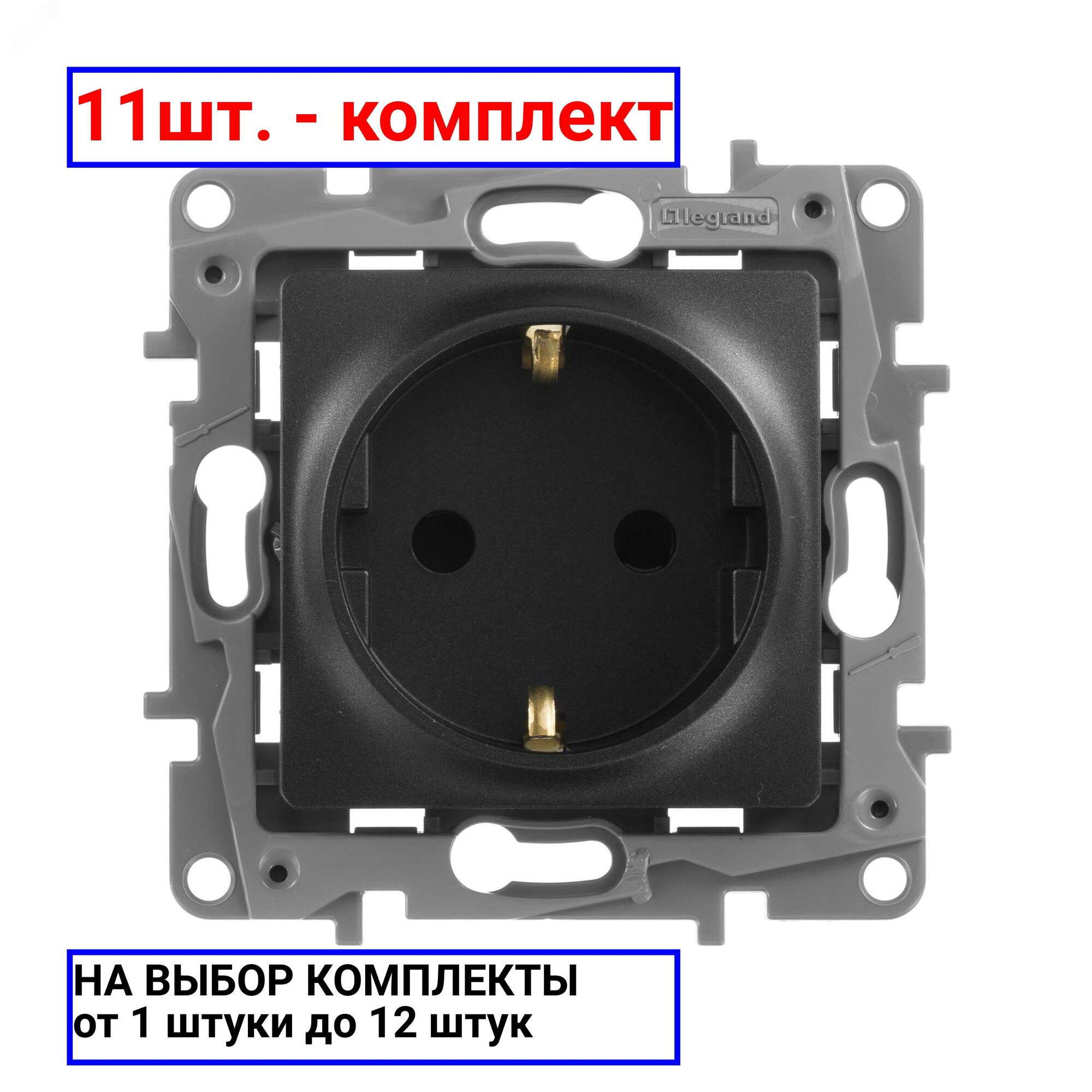 Купить 11шт. - ETIKA Розетка с заземлением со шторками антрацит винтовые зажимы / Legrand; арт. 672622; оригинал / - комплект 11шт