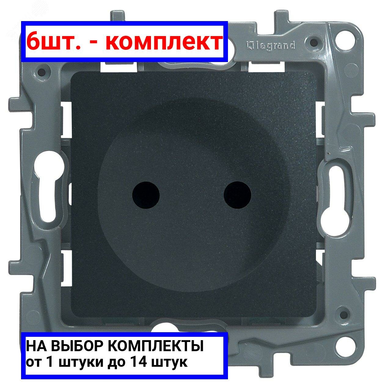 Купить 6шт. - ETIKA Розетка без заземления со шторками антрацит винтовые зажимы / Legrand; арт. 672634; оригинал / - комплект 6шт