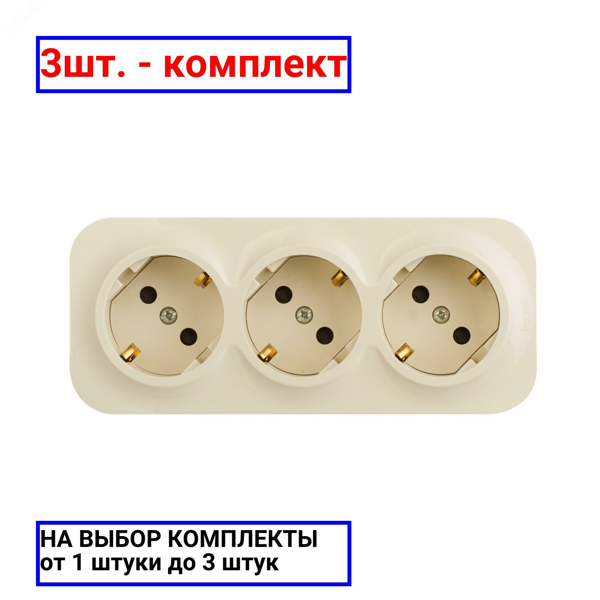 Розетка тройная накладная / наружная с заземляющим контактом и защитными шторками Legrand Quteo 782268, цвет слоновая кость (комплект из 3шт)