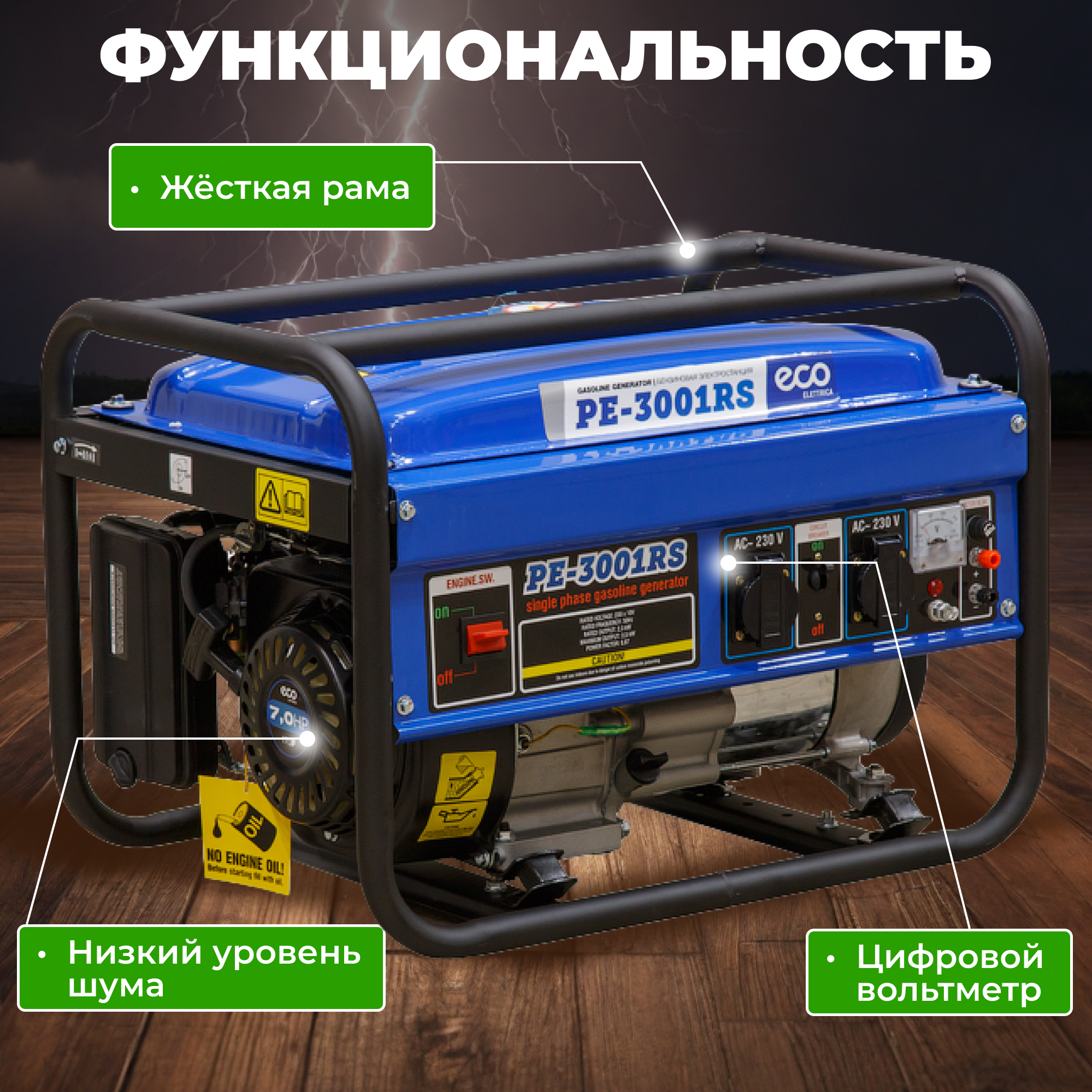 СохранитьГенератор Eco бензиновый PE-4001RS интересное: