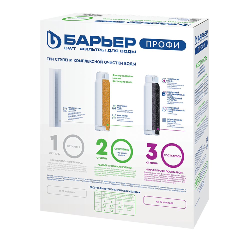 БАРЬЕР Р123Р00 Комплект картриджей для фильтра под мойкой Профи Жесткость, 1 уп, 3 шт.