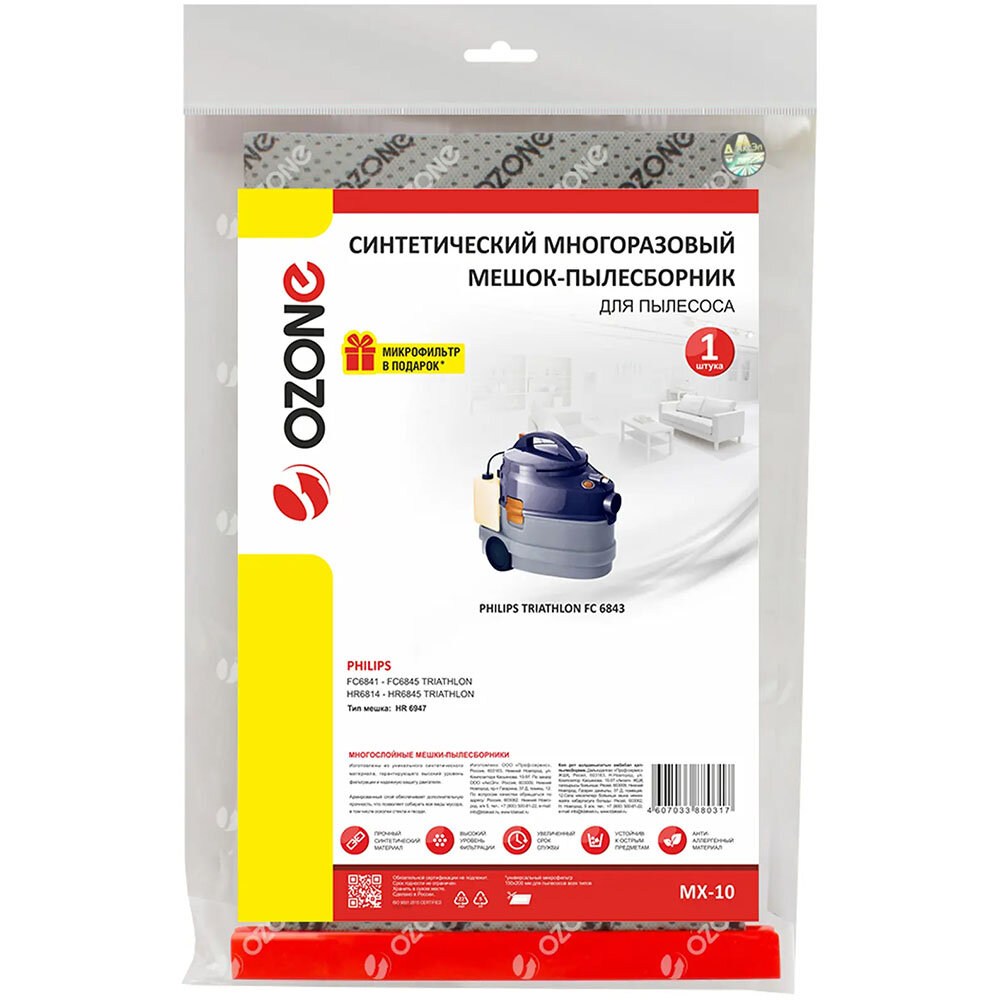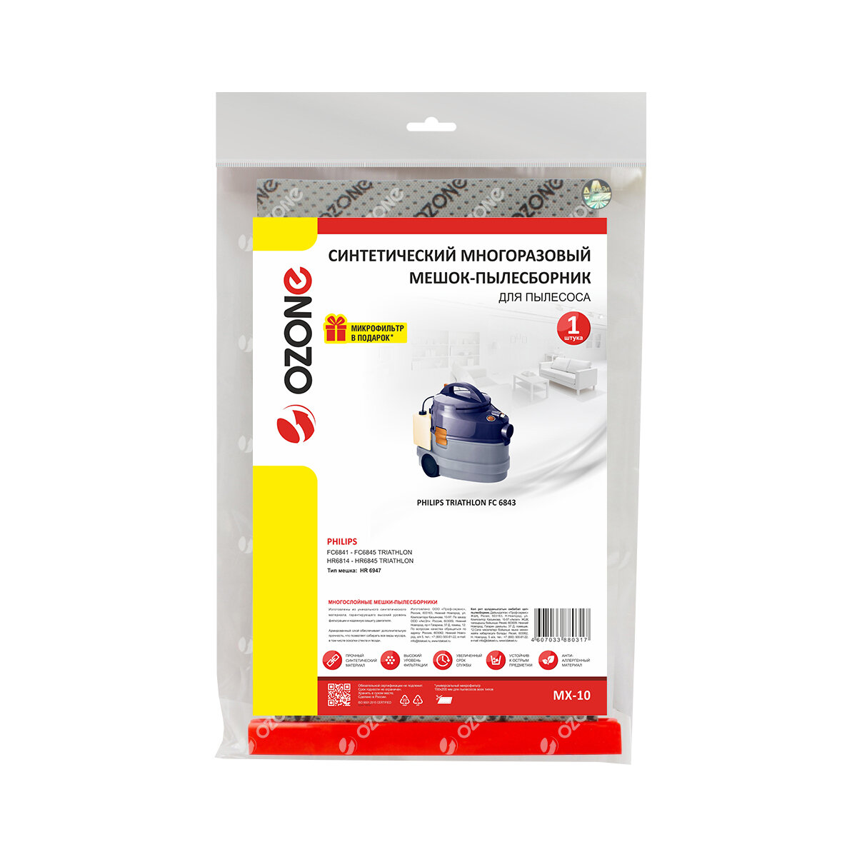 Многоразовый мешок для пылесоса Philips Triathlon, OZONE MX-10 , арт. OZONE MX-10