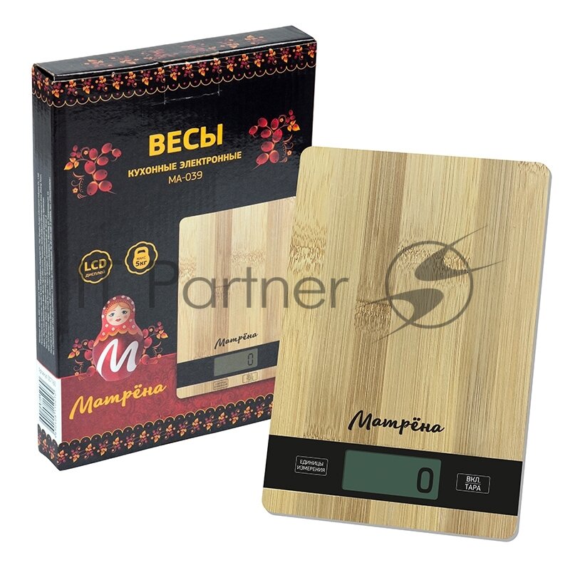 Весы кухон. эл. Матрена МА-039 (Бамбук) до 5кг, дел 1гр, 15*21см (2*ААА в компл) 7160