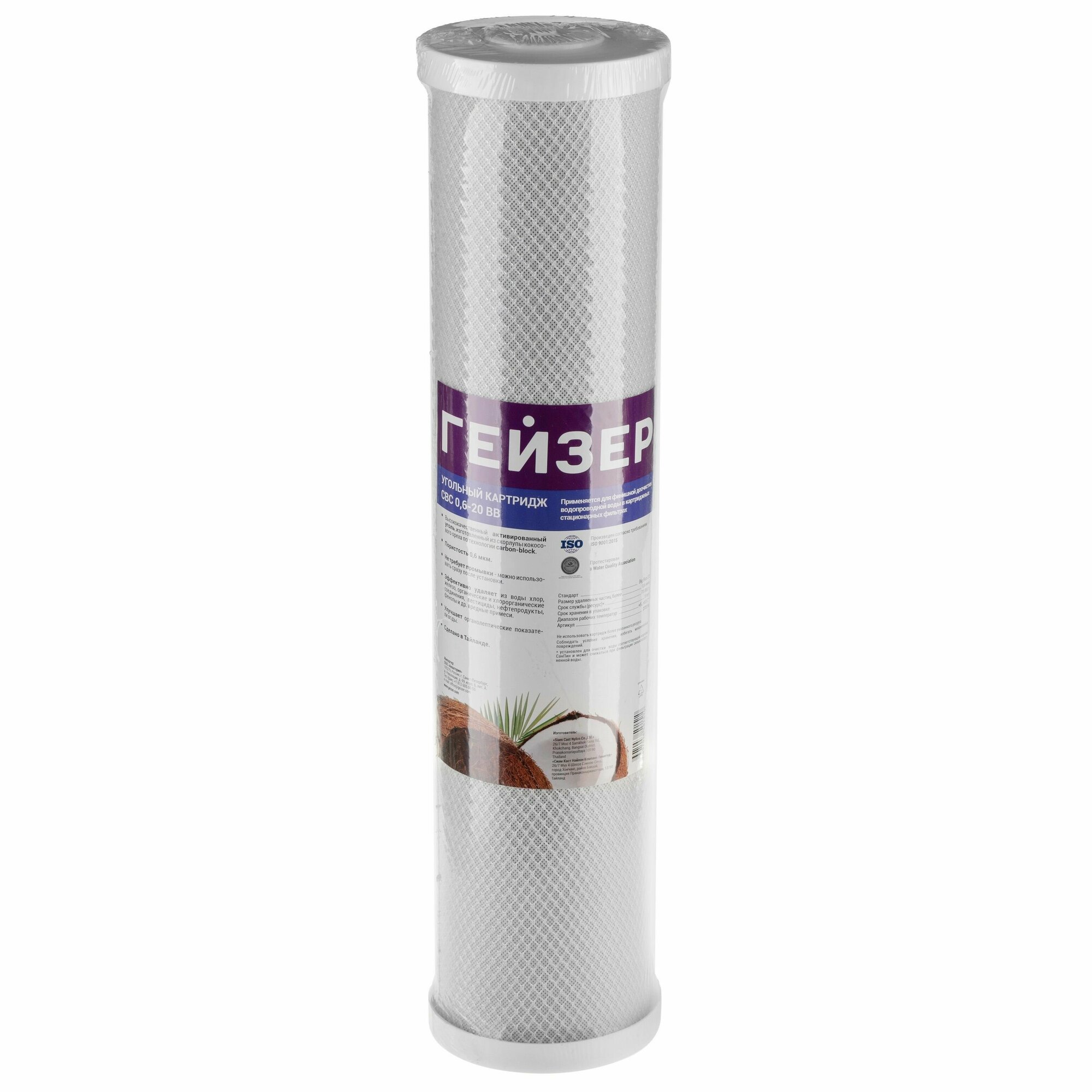 Картридж Гейзер CBC 0,6 - 20BB для магистральных фильтров из кокосового активированного угля для кондиционирования воды и глубокой очистки воды от хлора, органических и хлорорганических соединений