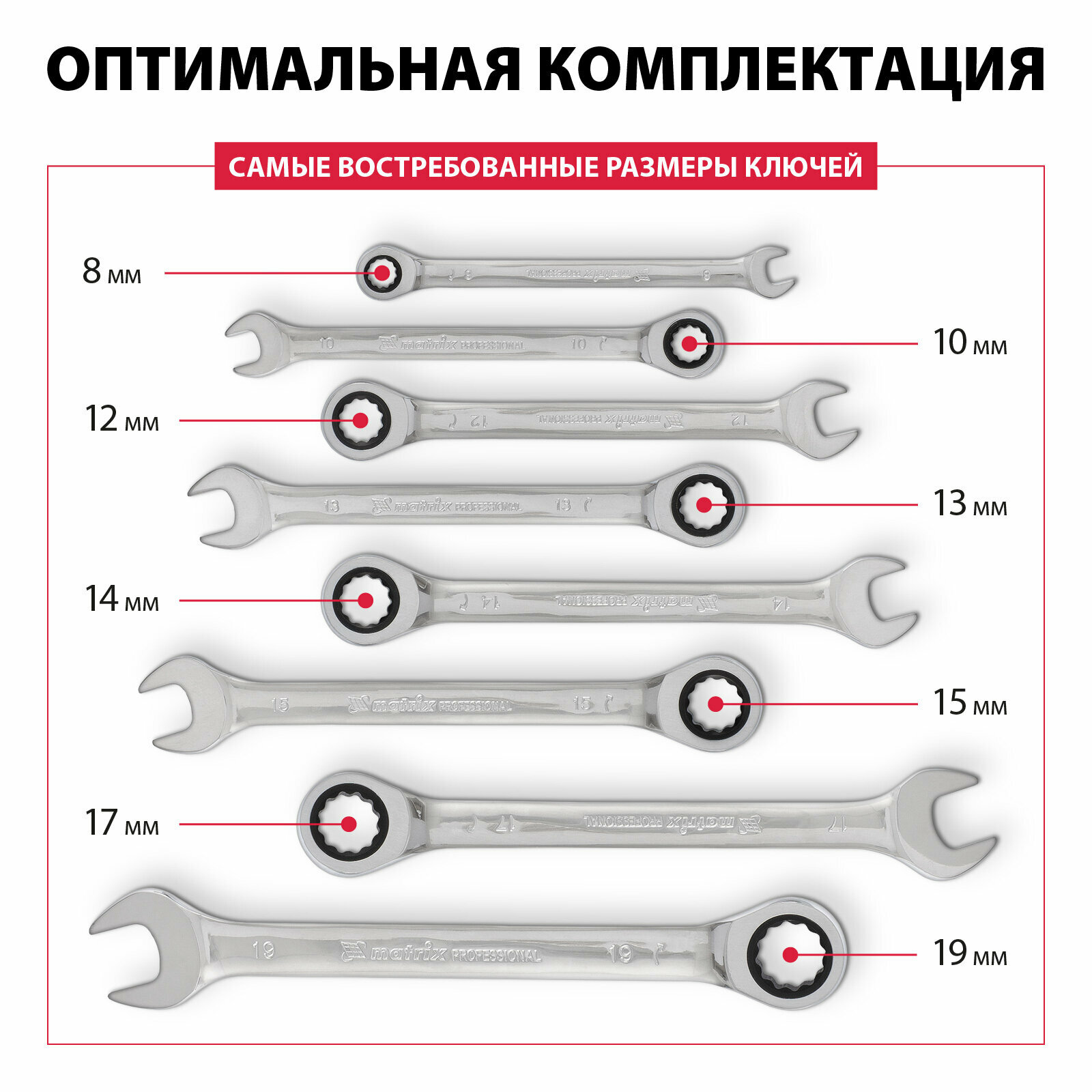 Набор комбинированных ключей MATRIX 14513, трещеточных 8 шт.