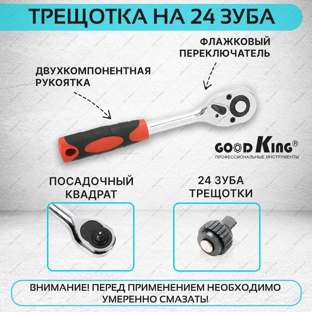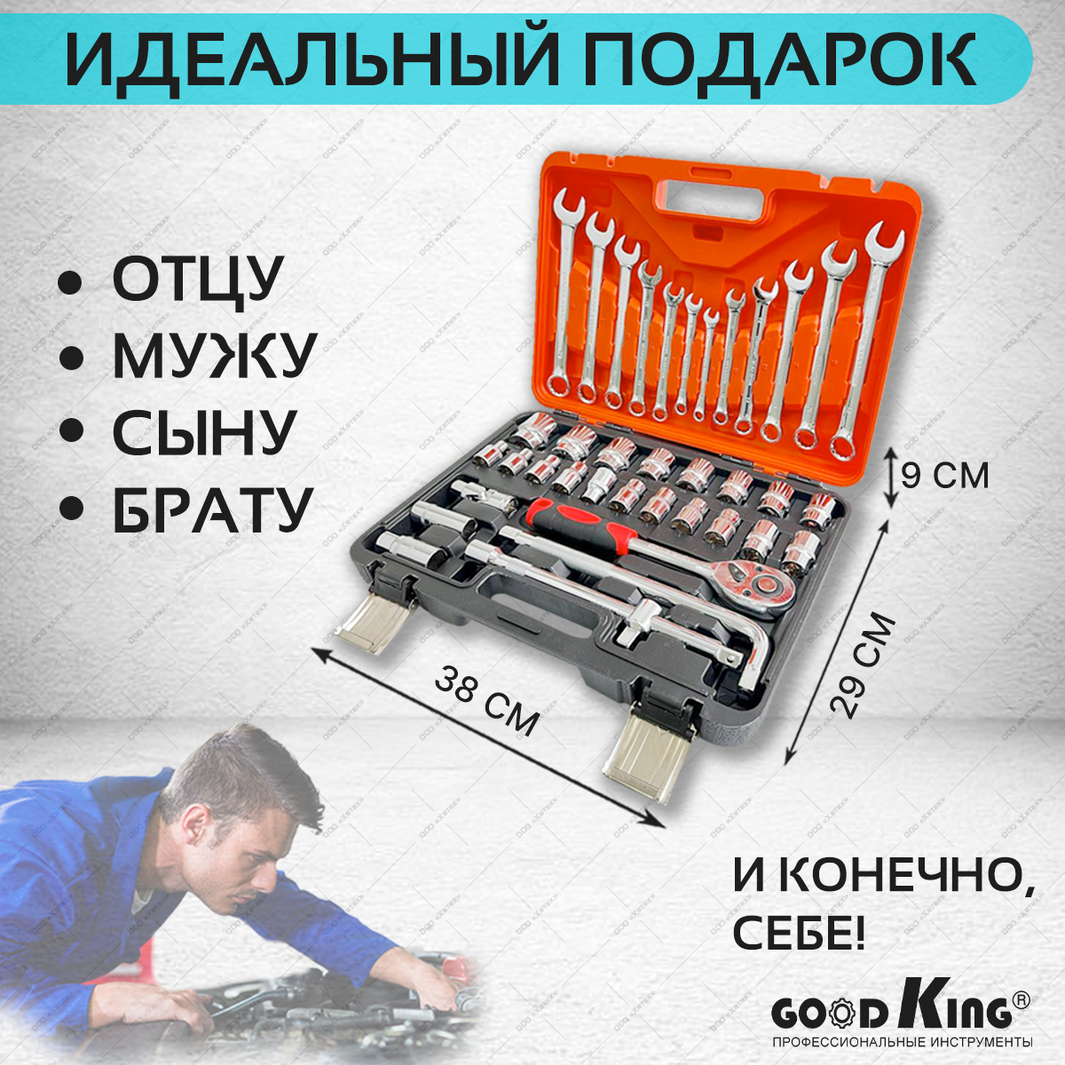 Купить Набор ручных инструментов для авто Goodking K-10038, 38 предметов, трещотка 24 зубца 1/2" .