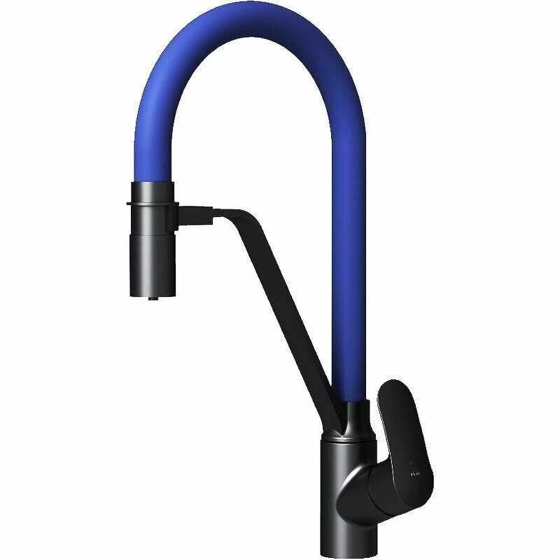 Смеситель AM.PM "Like", для кухни, гибкий излив, цвет синий/чёрный