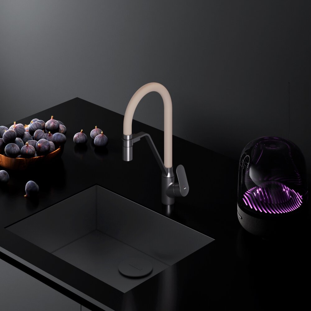 Смеситель для кухни AM.PM Like гибкий бежевый/черный излив, с фильтром для питьевой воды, технология Fresh Boost 2 в 1 управление одной ручкой, латунь