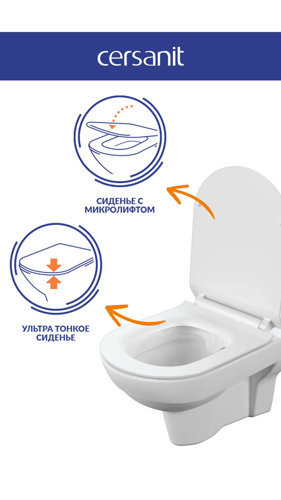 Унитаз подвесной CERSANIT CITY Clean On DPL EO slim безободковый с сиденьем дюропласт микролифт