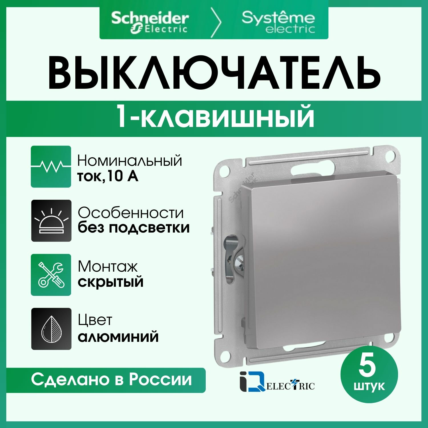 Купить Выключатель одноклавишный Алюминий 5шт Schneider Electric Atlas Design ATN000311