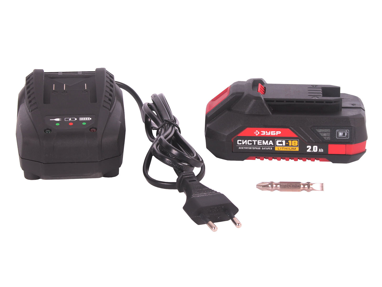 ЗУБР С1-18, 18 В, 40 Н·м, 2 АКБ (2 А·ч), дрель-шуруповерт, кейс (ДШЛ-185-22)