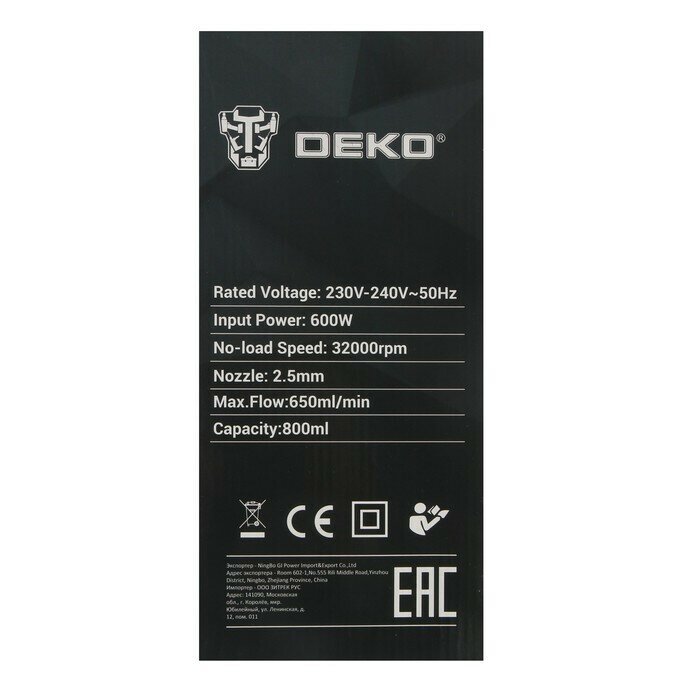 Deko Краскопульт сетевой DKSG600 (600 Вт, 800 мл) .