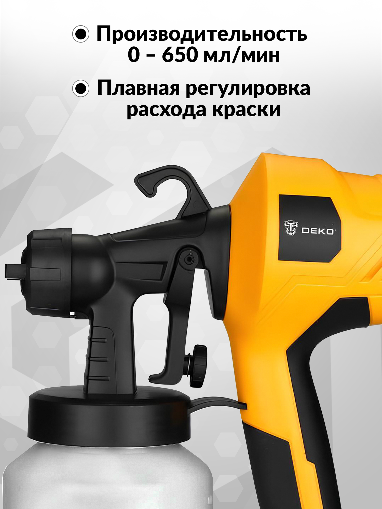 Краскопульт Deko DKSG500 500Вт бак:800мл 650мл/мин, желтый/черный