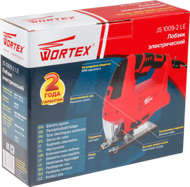 Купить Лобзик электрический Wortex JS 1009-2 LE, в коробке (900 Вт, пропил до 100 мм, лазер, подсветка, литая платформа) (JS10092LE0021)