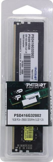 Оперативная память Patriot Signature PSD416G32002 DDR4 - 16ГБ 3200МГц, DIMM, Ret