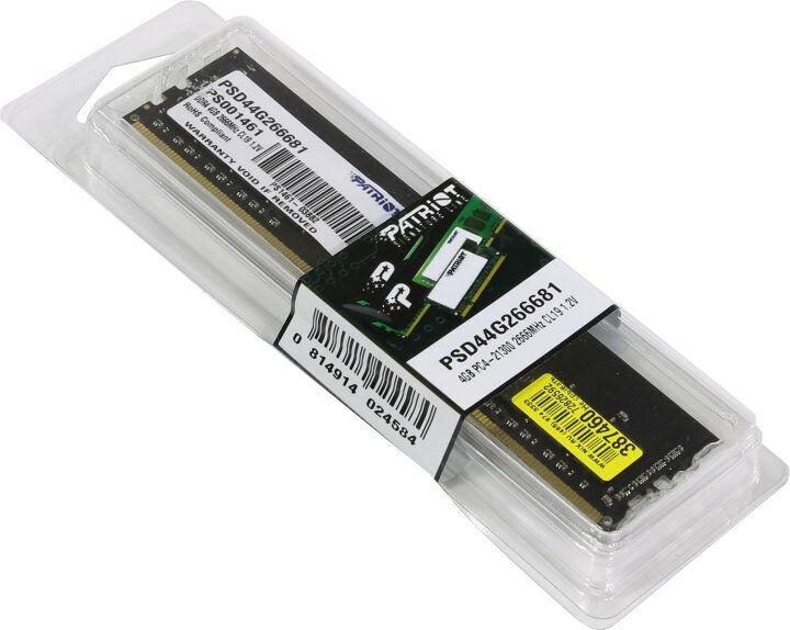 Оперативная память для компьютера Patriot PSD44G266681 DIMM 4Gb DDR4 2666 MHz PSD44G266681