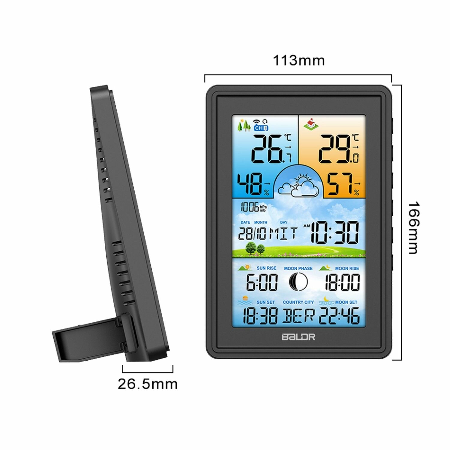 Многофункциональная беспроводная метеостанция с цветным дисплеем Baldr .