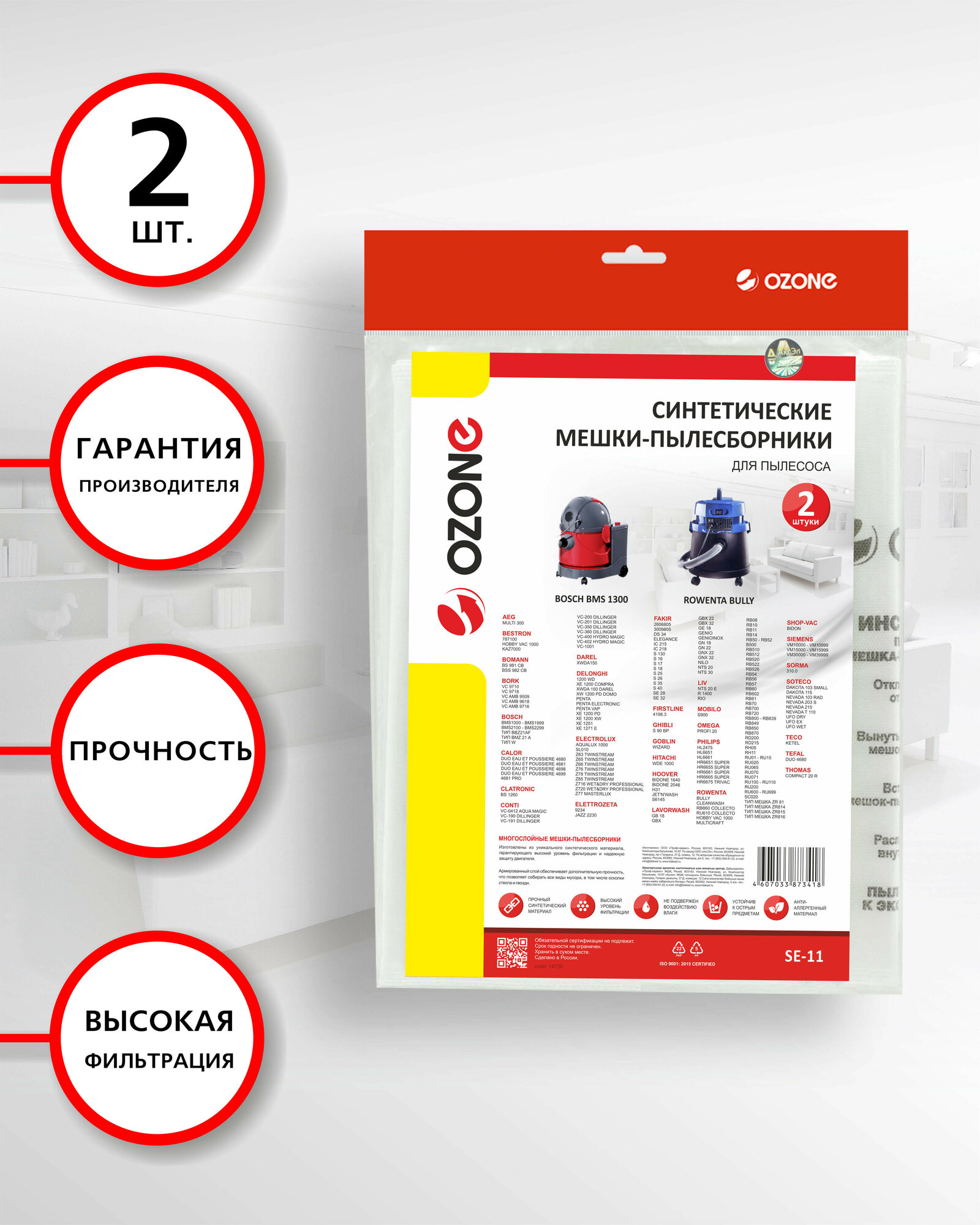 Мешки-пылесборники SE-11 Ozone синтетические для пылесоса, 2 шт интересное: