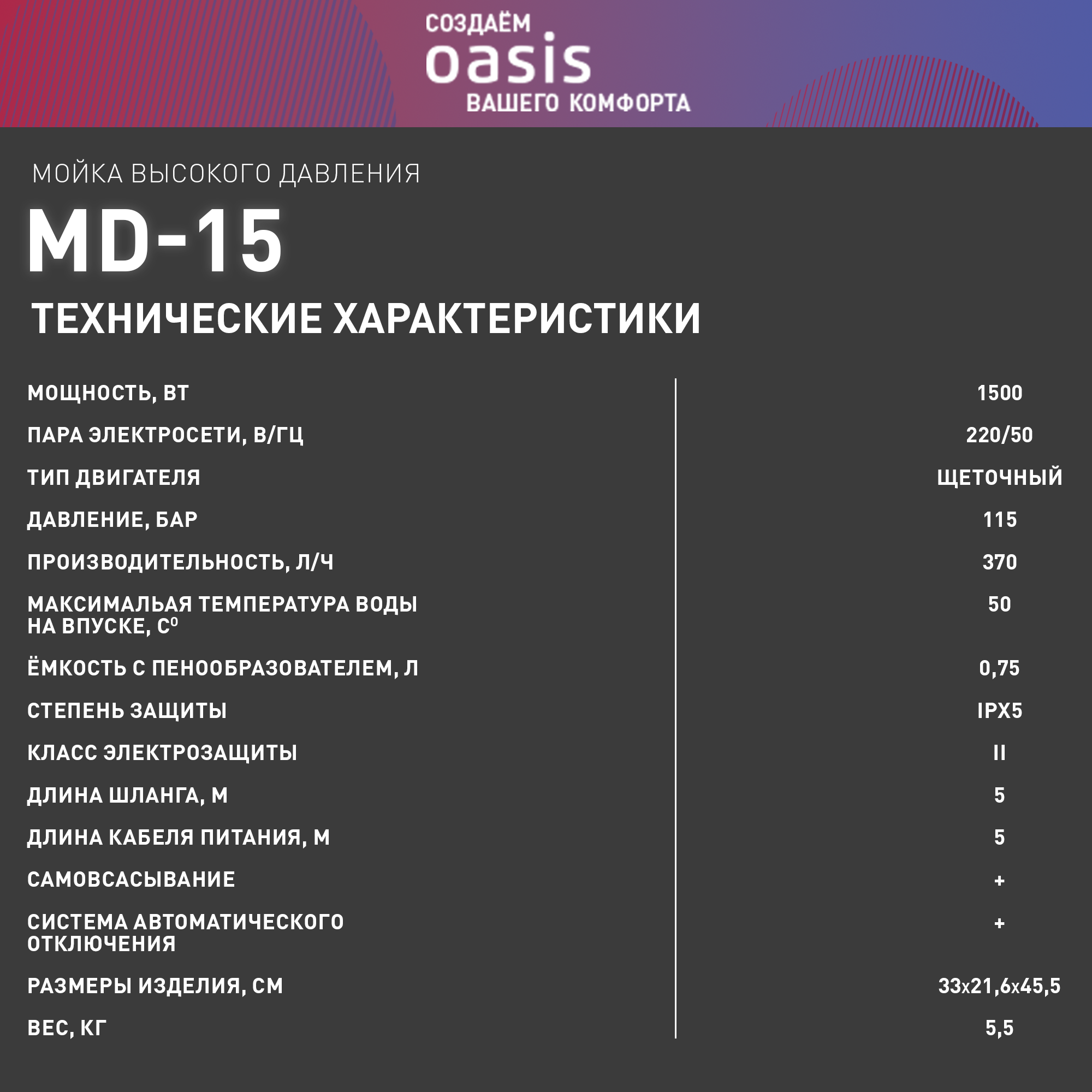 OASIS MD-15 Мойка высокого давления