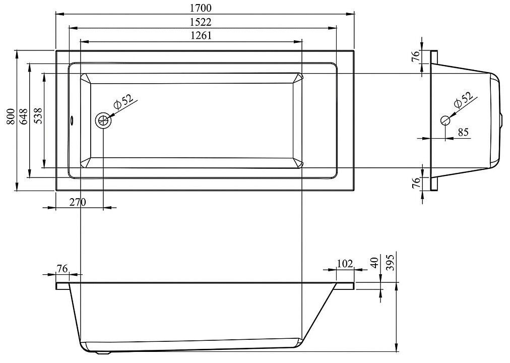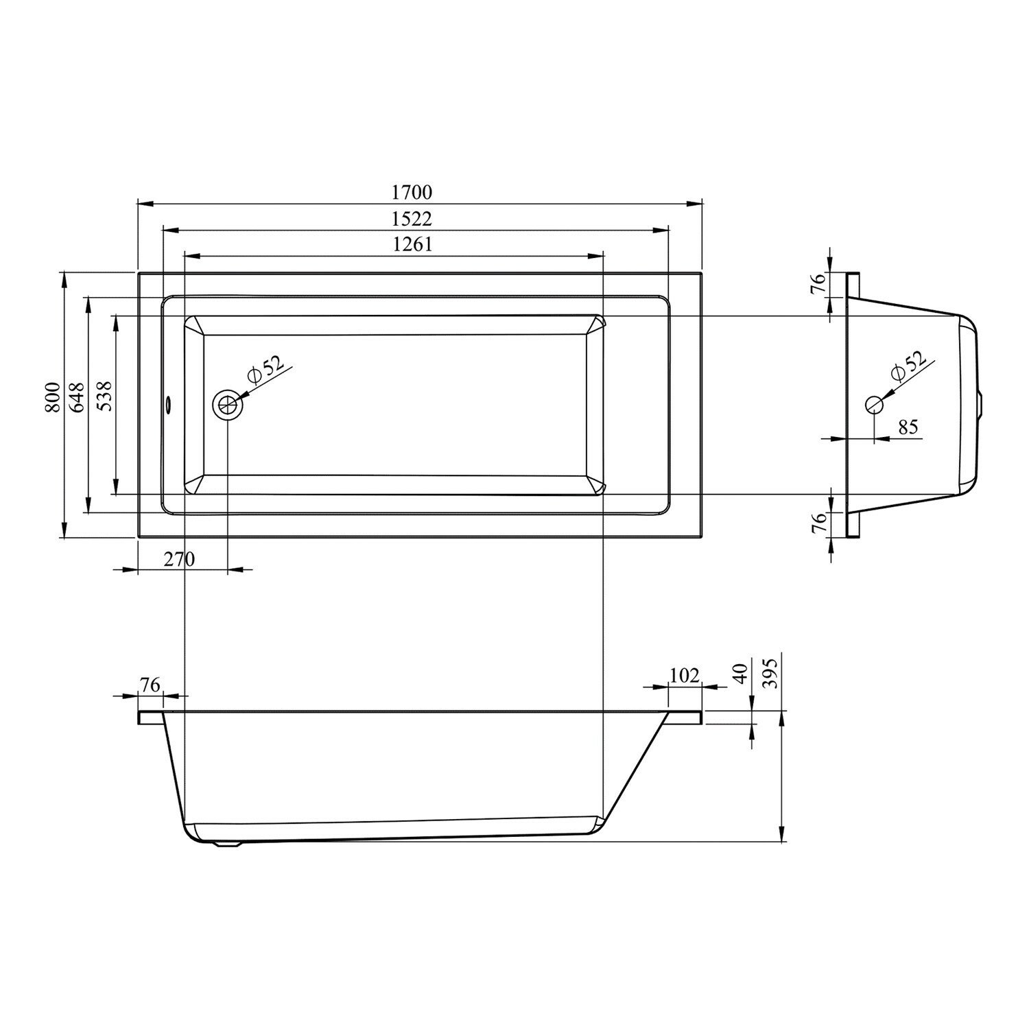 Ванна акриловая 170х80 Lavinia Boho Element 37090080: прямоугольная ванна из литьевого акрила с усиленным армированным корпусом, размер 170 х 80 см