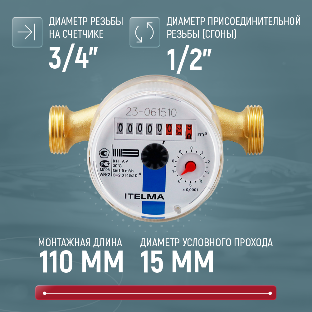Счётчик холодной воды ITELMA WFK20.D110, L110, Ду15