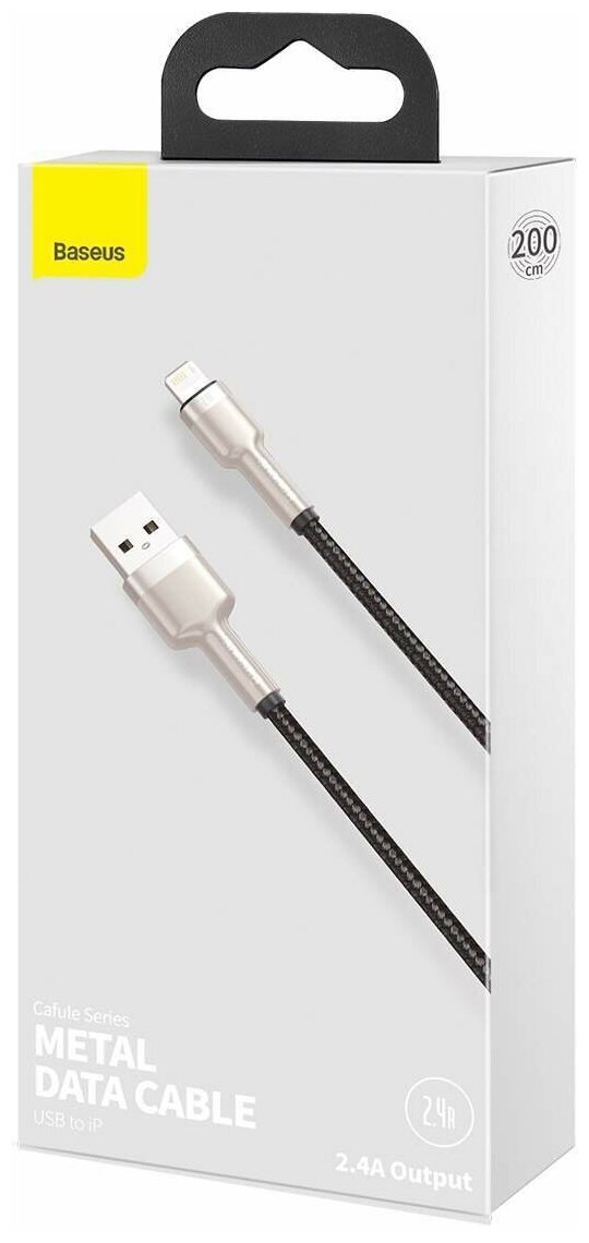 Купить Кабель для зарядки и передачи данных Baseus Cafule Metal Data, USB to Lightning, 2.4A, 2 метра, Черный