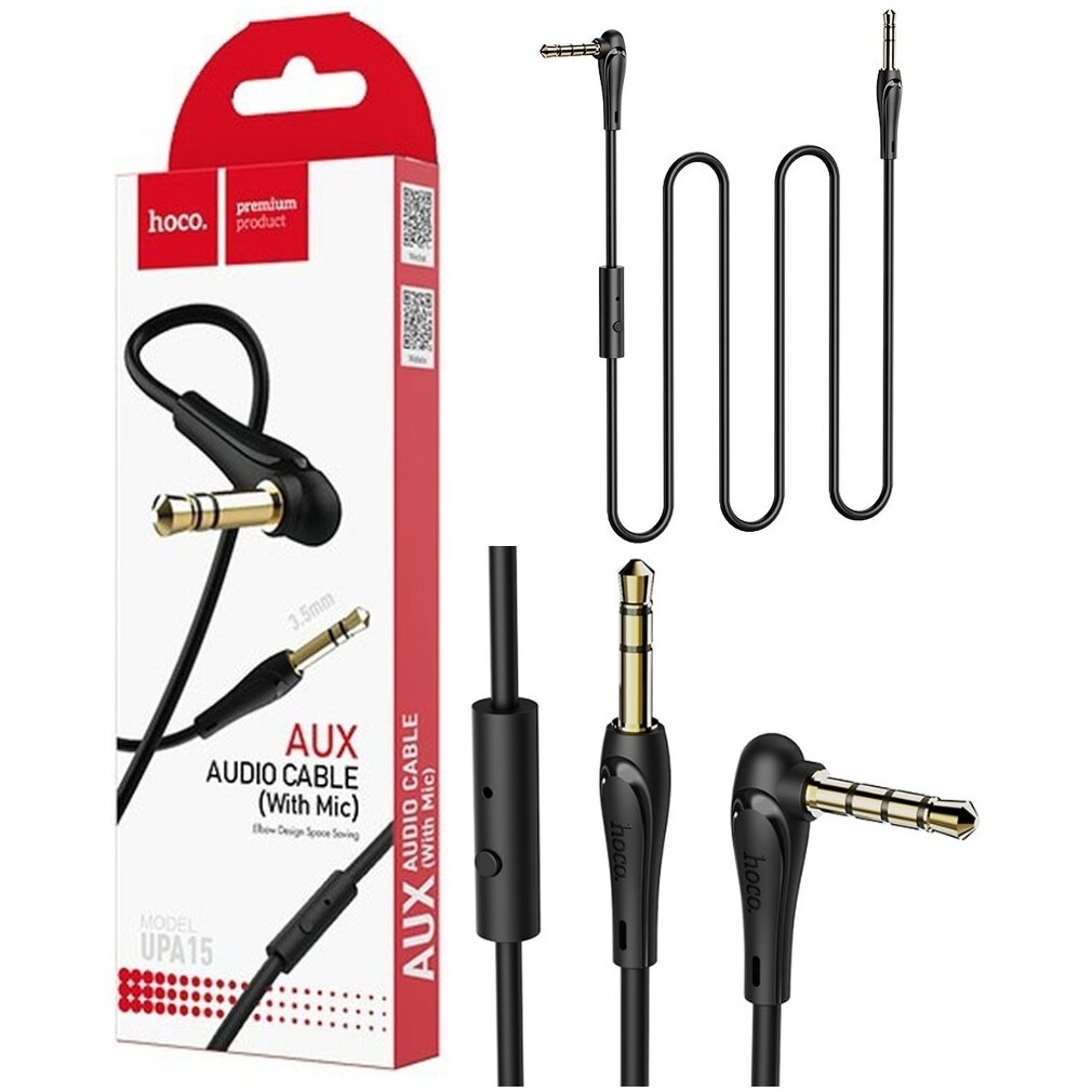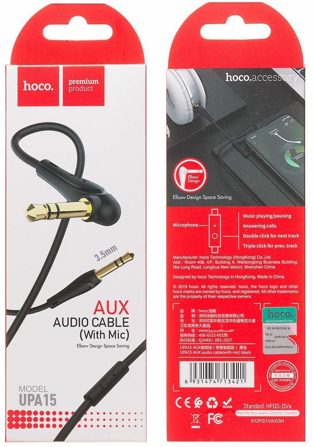 Аудио-кабель HOCO UPA15 AUX, 3.5 AUX - mini Jack 3,5, 1 м, с микрофоном, Черный