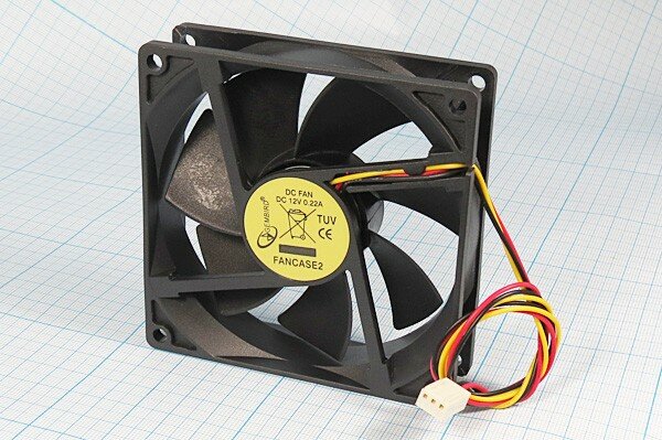 Вентилятор 12в 92 x 25мм Gembird FANCASE2 12V 0.22А втулка скольжения 3pin 30см 2500 об*мин