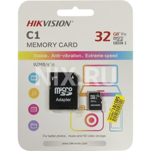 Hikvision Micro SecureDigital 32GB HS-TF-C1 STD 32G Adapter с SD адаптером R W Speed 92 20MB s , V10