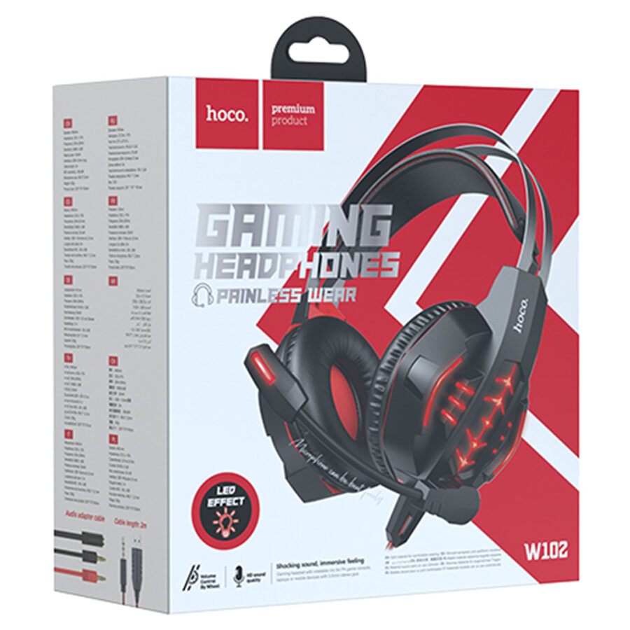 Наушники игровые HOCO W102 Gaming headphones проводные черно-красные