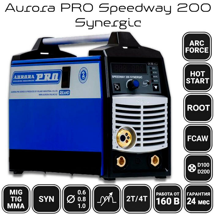 Полуавтомат сварочный инверторный Aurora Pro SPEEDWAY 200 SYNERGIC (MIG/MAG+MMA+TIG lift)