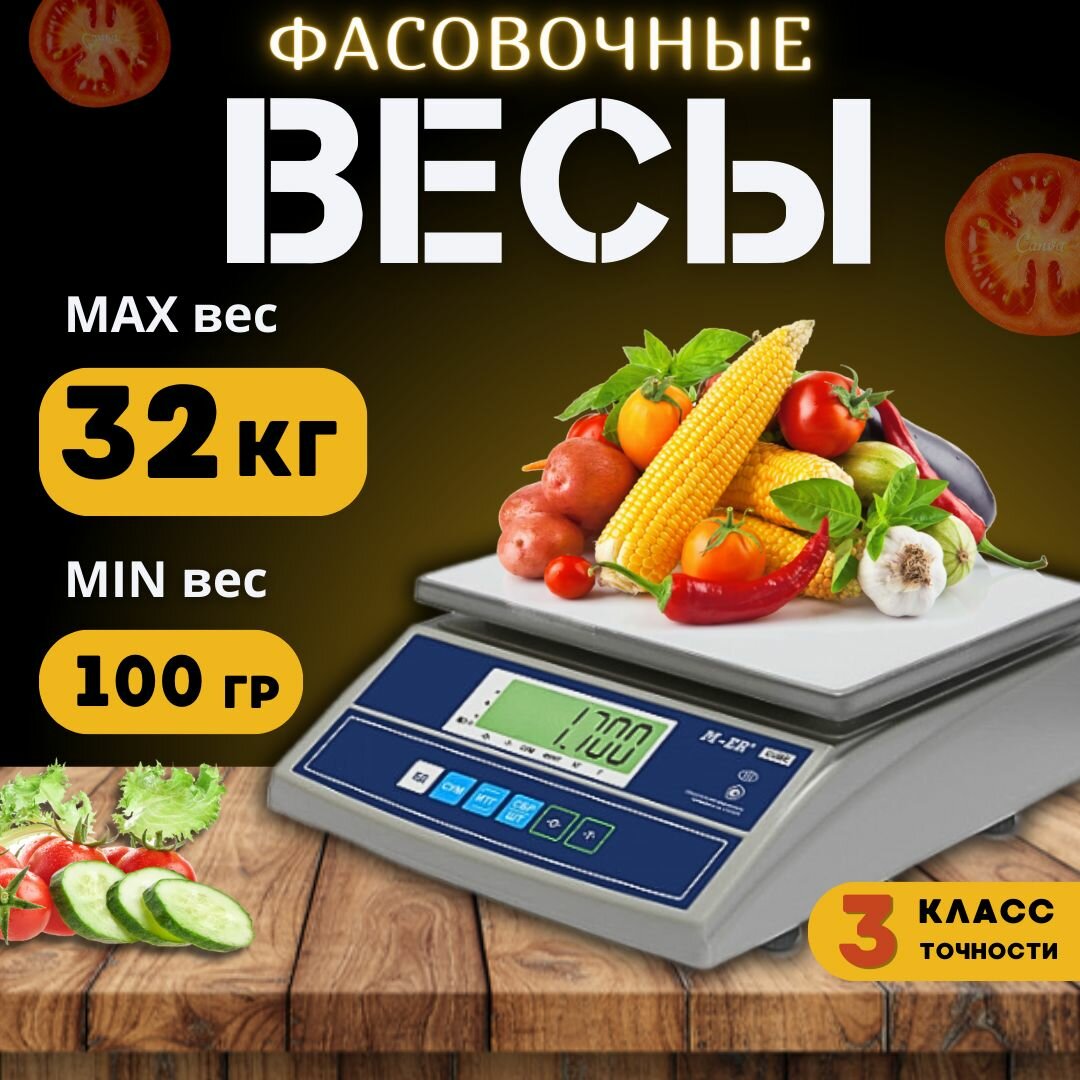 Весы фасовочные Mertech M-ER 326F-32.5 LCD, 0,1-32 кг, дискретность 5 г, 255x210 мм, без стойки интересное: