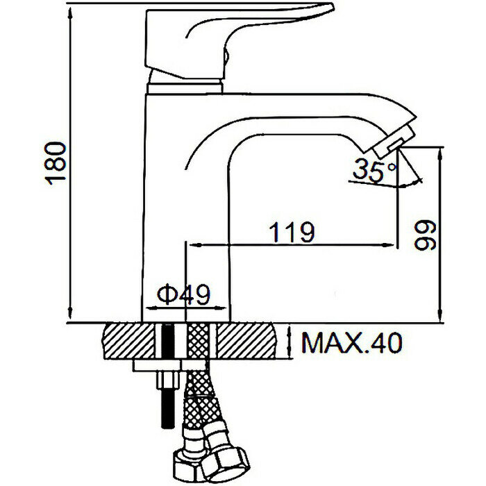 Смеситель для умывальника, карт.35мм, шпиль Ledeme, 1/10; L1034