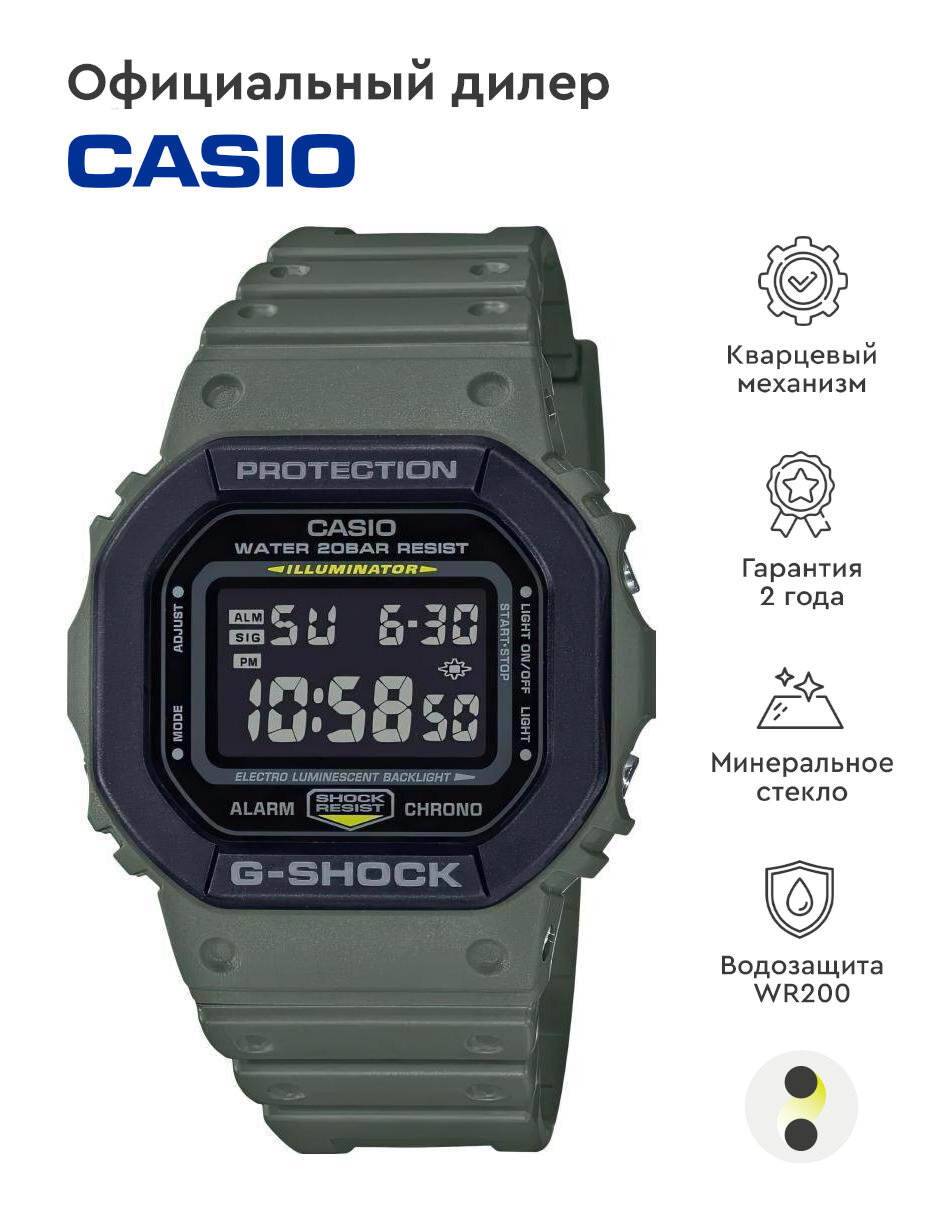 Наручные часы CASIO G-Shock DW-5610SU-3 мужские, кварцевые, будильник, секундомер, таймер обратного отсчета, водонепроницаемые, противоударные, зеленый