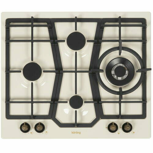 Варочная панель Korting 60см в ретро-дизайне, 4 высокоэффективные конфорки, WOK- сверхмощная конфорка, автоматический электроподжиг, газ-контроль каждой конфорки, передние переключатели, чугунные решетки, адаптер для WOK-конфорки, цвет - слоновая кость, ц