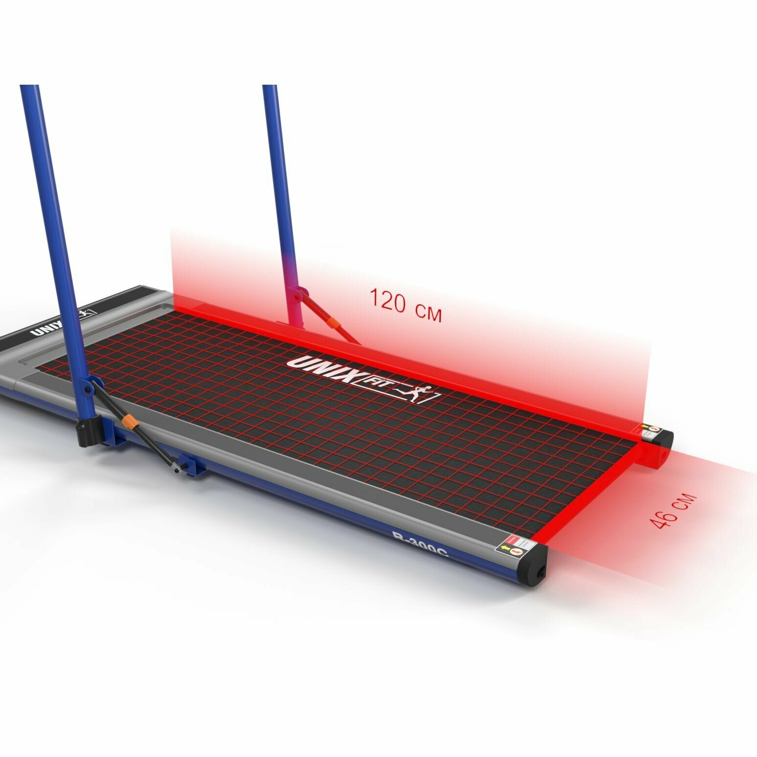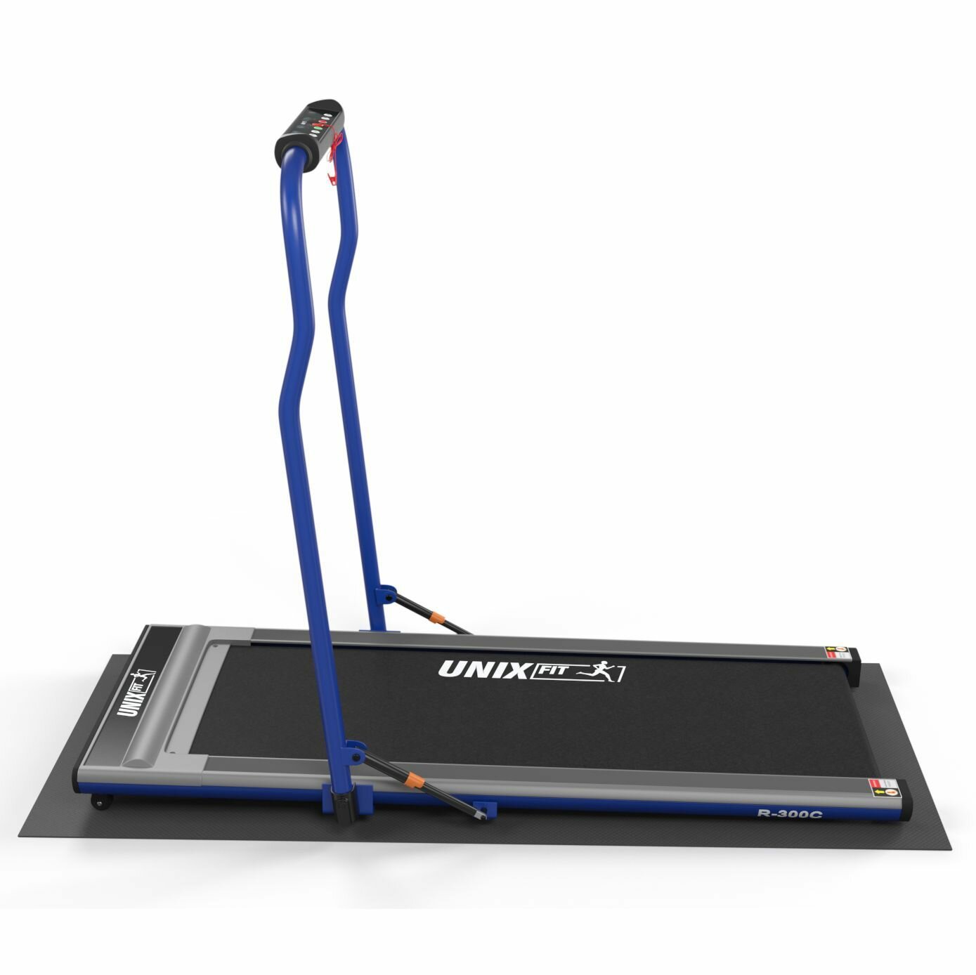 Беговая дорожка Unix Fit R-300C Blue с поручнем, мощность 1.5 л.с., до 100 кг, скорость 0.8 - 12 км/ч, 6 плоских эластомеров UNIXFIT