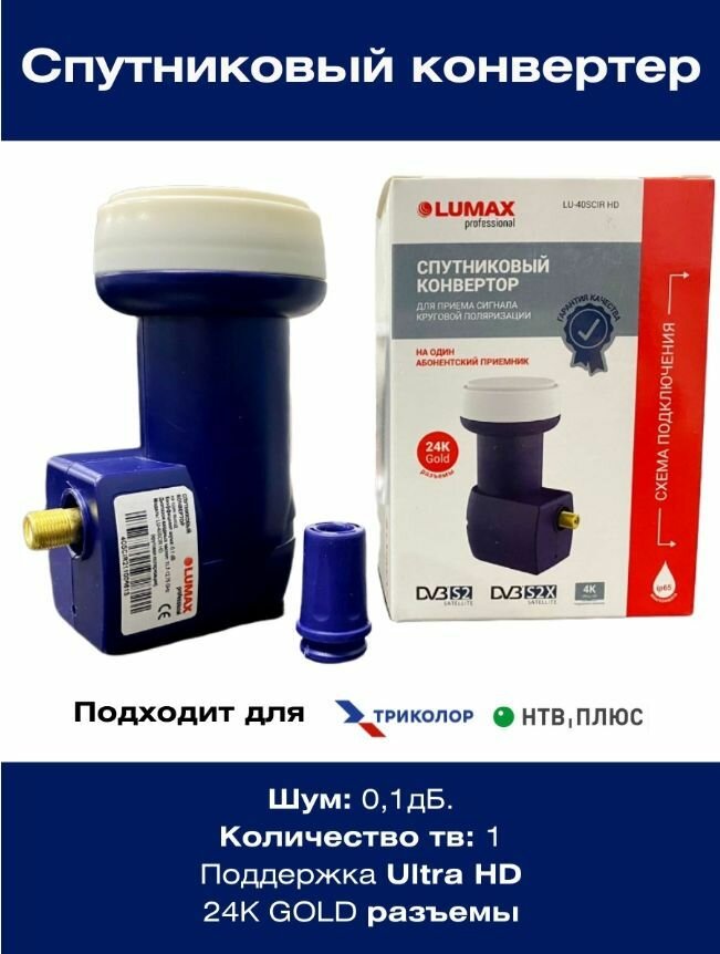 Купить Конвертер спутниковый 4K Full HD Lumax LU-40SCIR HD круговой поляризации (для Триколор ТВ и НТВ-Плюс) 1 выход