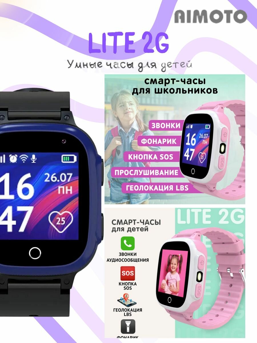 Умные часы для детей Aimoto Lite 2G детские часы телефон с обратным звонком, кнопкой SOS, LBS геолокация (розовый)