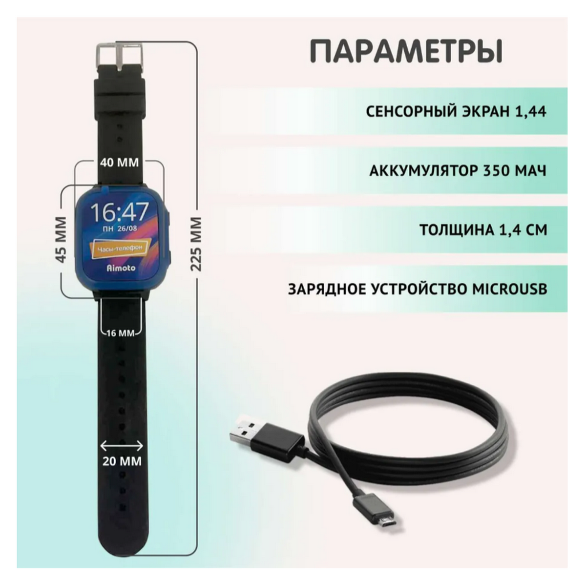 Умные часы-телефон Aimoto Lite Black (9101201)