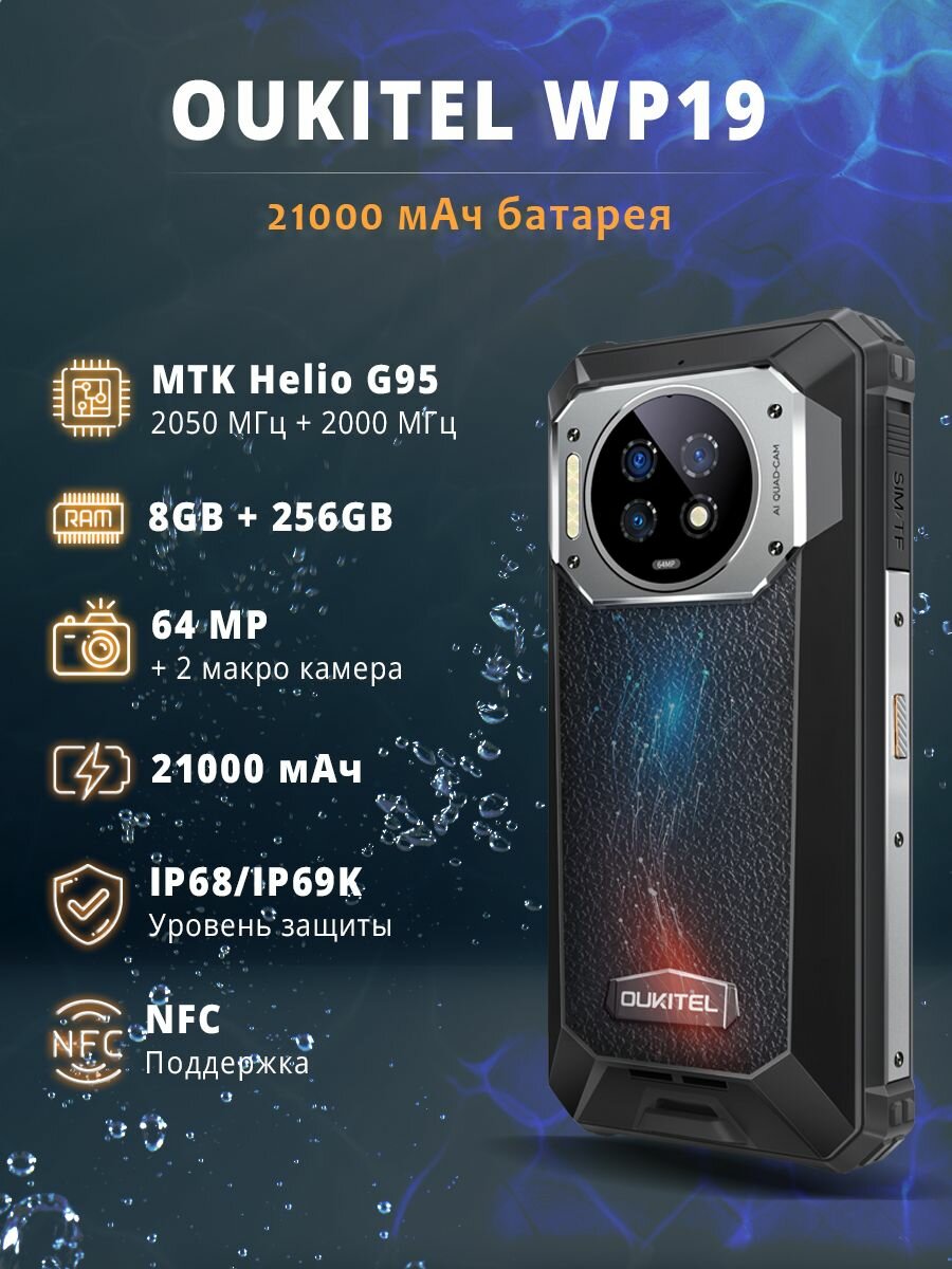 Смартфон OUKITEL WP19 8/256 ГБ, Dual SIM (nano-SIM), черный
