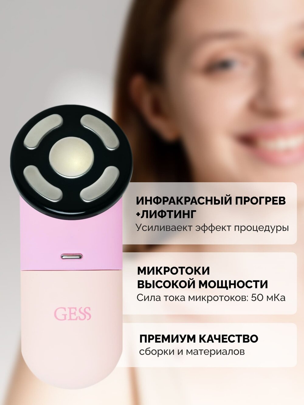 Микротоковый массажер для лица с прогревом Gess REISEN 086 интересное: