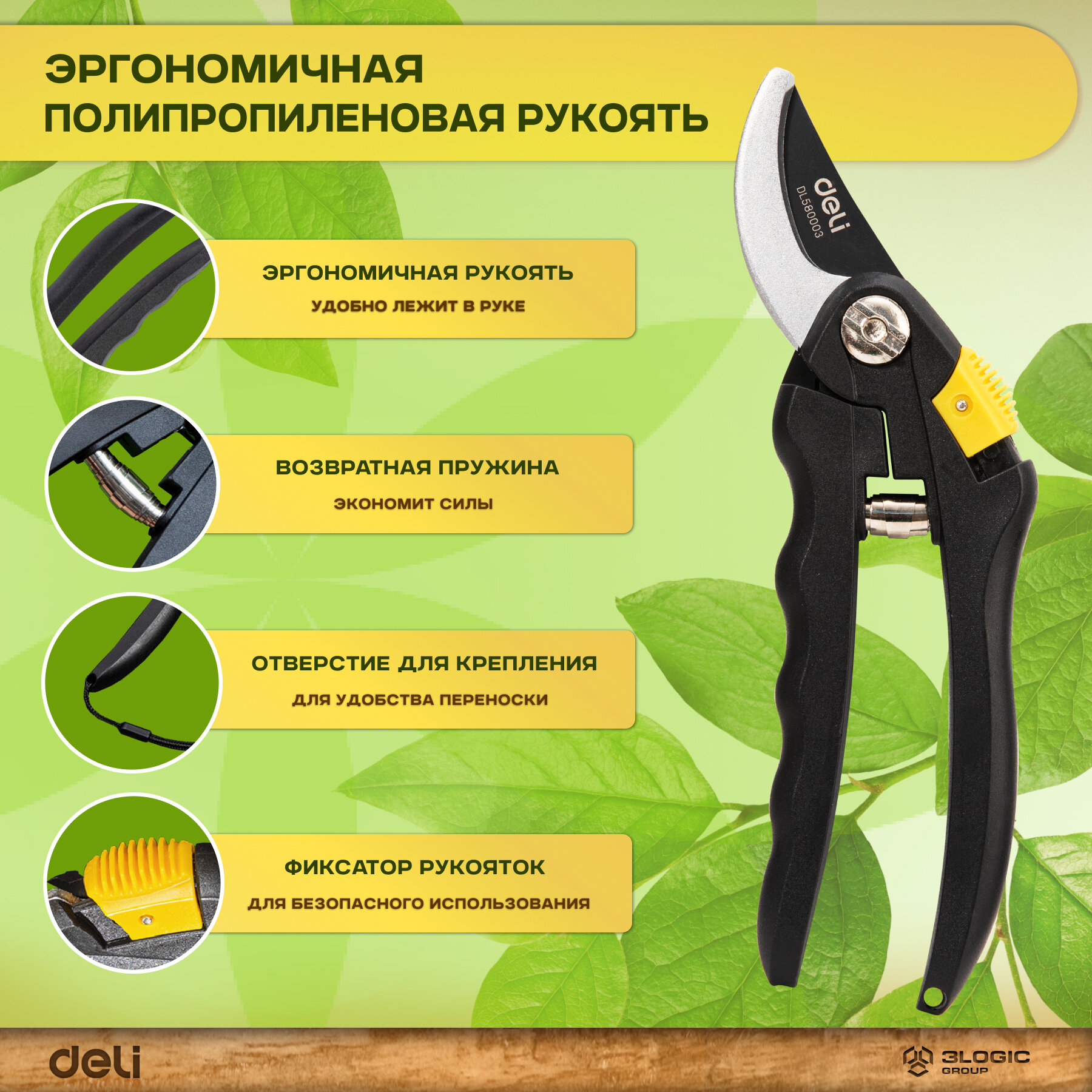 DELI Набор для сада и огорода (сучкорез, кусторез, секатор) DL580003 (Сталь 55С, термообработанная поверхность, противоскользящая рукоять) 98495
