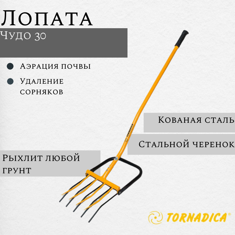 Чудо лопата. Рыхлитель механический/ вилы-рыхлитель почвы/ лопата рыхлитель с черенком 30 торнадика