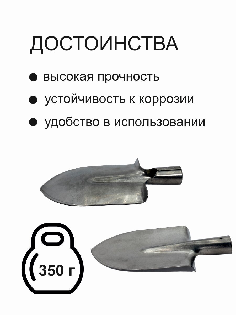| Плюсы: | Лёгкость, прочность штыка. Легко проникает в почву, даже в целину! |