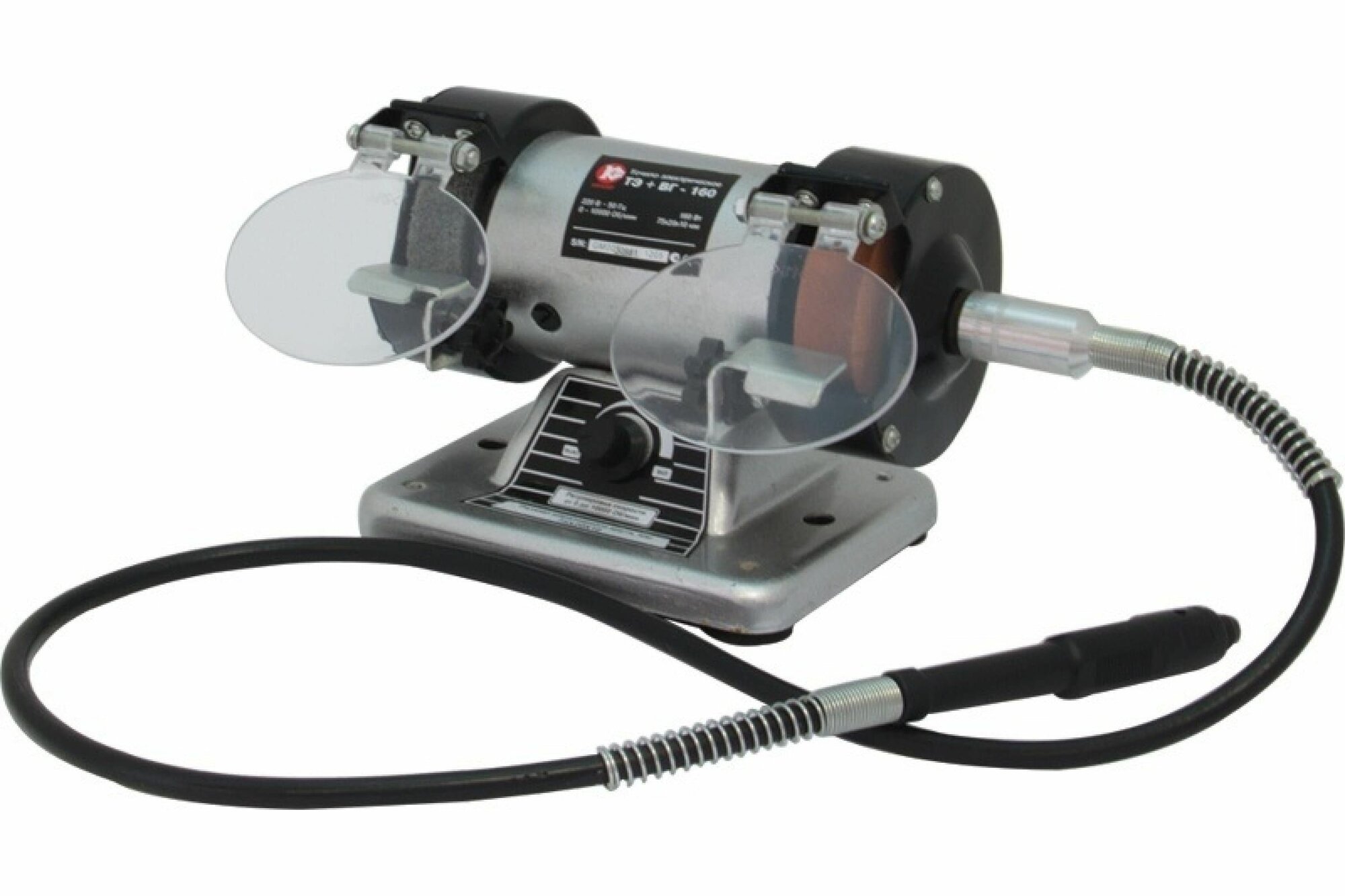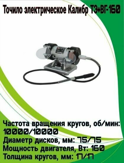 Купить Точильный станок калибр ТЭ+ВГ-160 (160Вт, 0-10000об/мин, круг 75*10*17мм, гибкий вал, коробка)