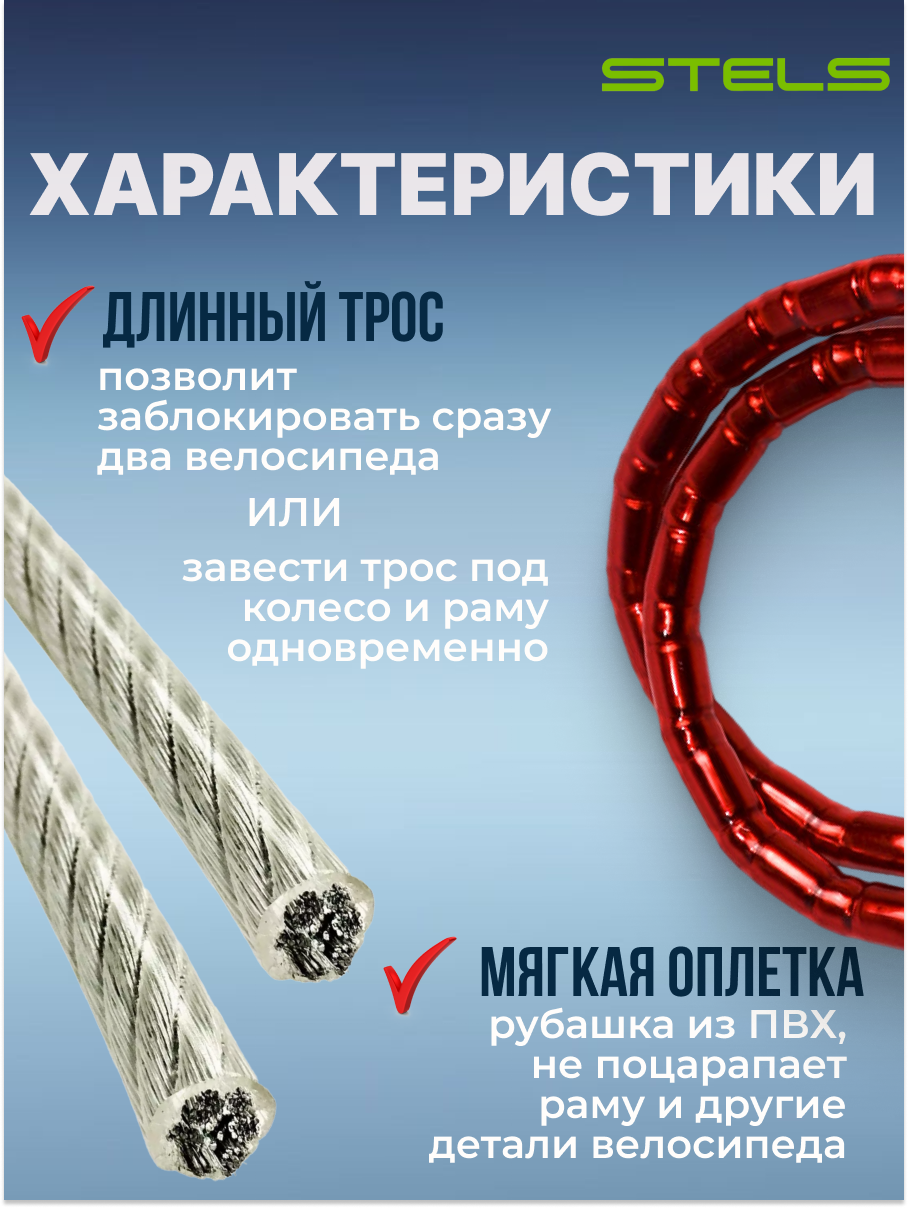 Замки Stels Трос-замок 81601 (1000мм) код. диам. 18мм