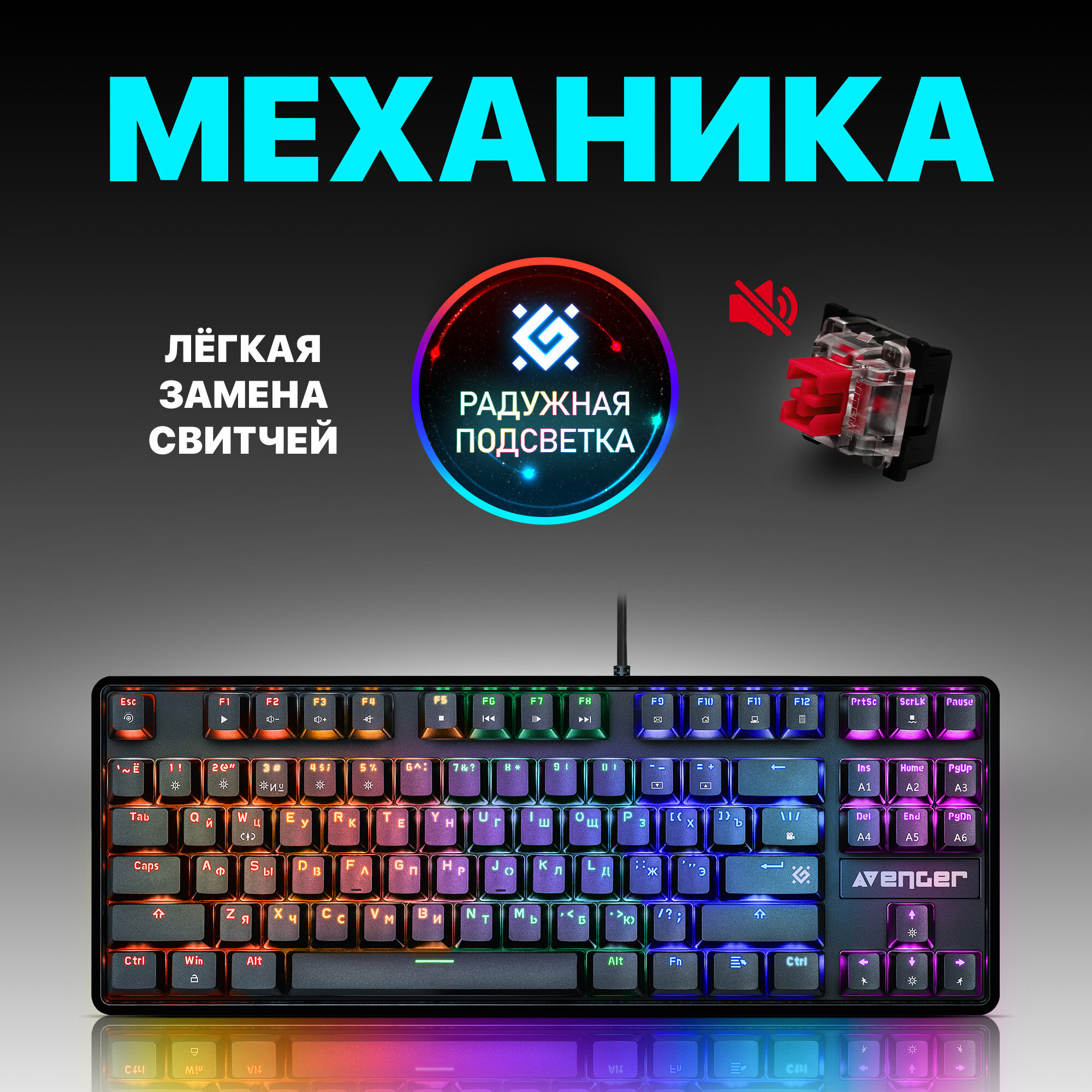 Механическая клавиатура DEFENDER Dark Arts GK-375 RU, Rainbow,87 клавиш