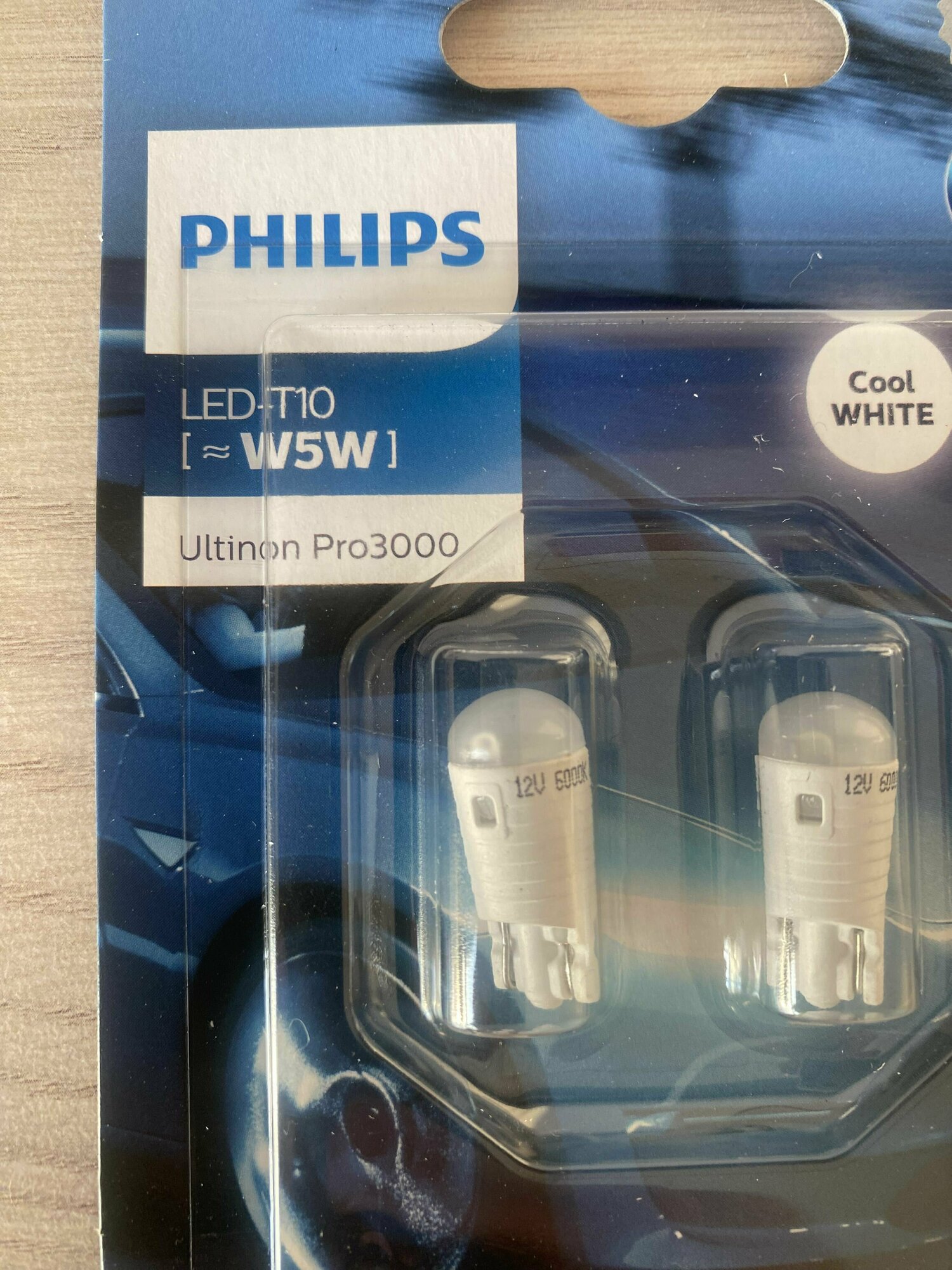 Светодиодные лампы Philips UltinonPro3000 LED W5W (T10) 6000K, холодный белый, 11961U30CWB2, комплект (2 шт.)