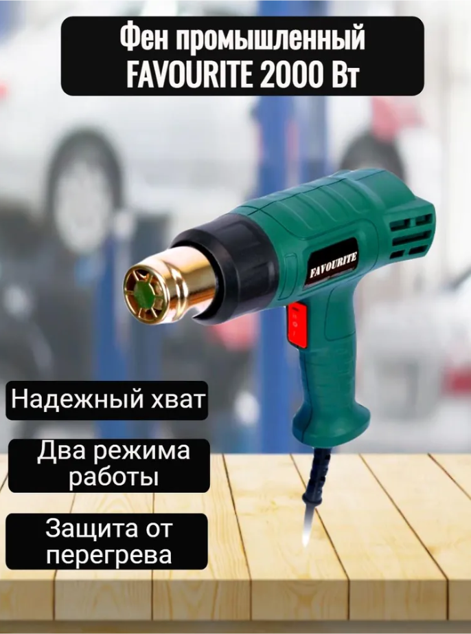 Favourite Фен промышленный 2000 Вт 400-600 С 300-500 л-мин 2 режима работы Fhgp 2000 .